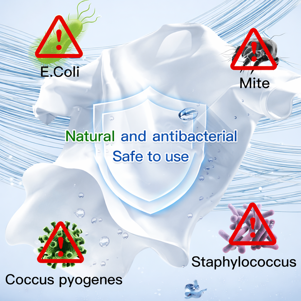 Helps defend fabrics against bacteria and mites while remaining gentle, safe, and effective for everyday use