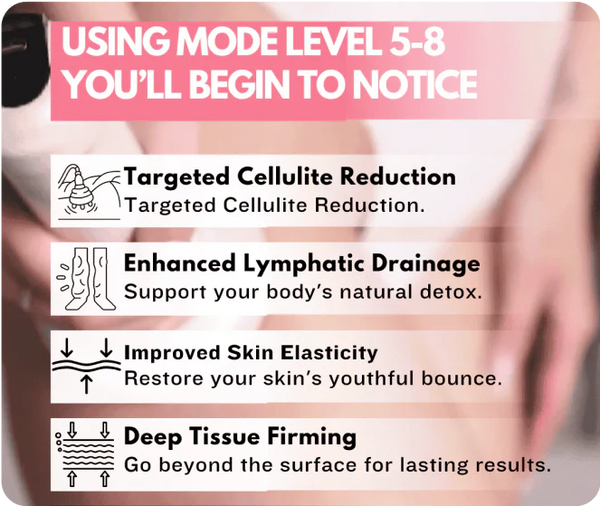 Advanced mode for experienced users. Delivers deep tissue stimulation, boosts collagen production, and smooths persistent cellulite.